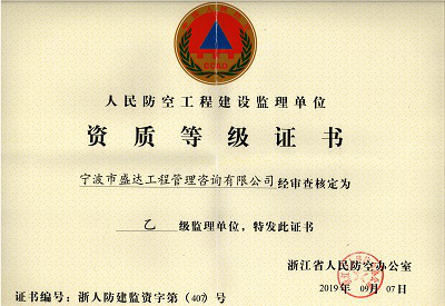 資質(zhì)是企業(yè)生存和發(fā)展的基礎(chǔ)。公司人防工程監(jiān)理乙級(jí)資質(zhì)的成功晉升,是公司繼年初年取得造價(jià)咨詢乙級(jí)資質(zhì)后的又一資質(zhì)建設(shè)方面的重大進(jìn)步,使我盛達(dá)工程管理咨詢有限公司在同行業(yè)中的競(jìng)爭(zhēng)能力又得到了提升,為公司能更好的承接高標(biāo)準(zhǔn)的人防監(jiān)理業(yè)務(wù)奠定了堅(jiān)實(shí)的基礎(chǔ)。